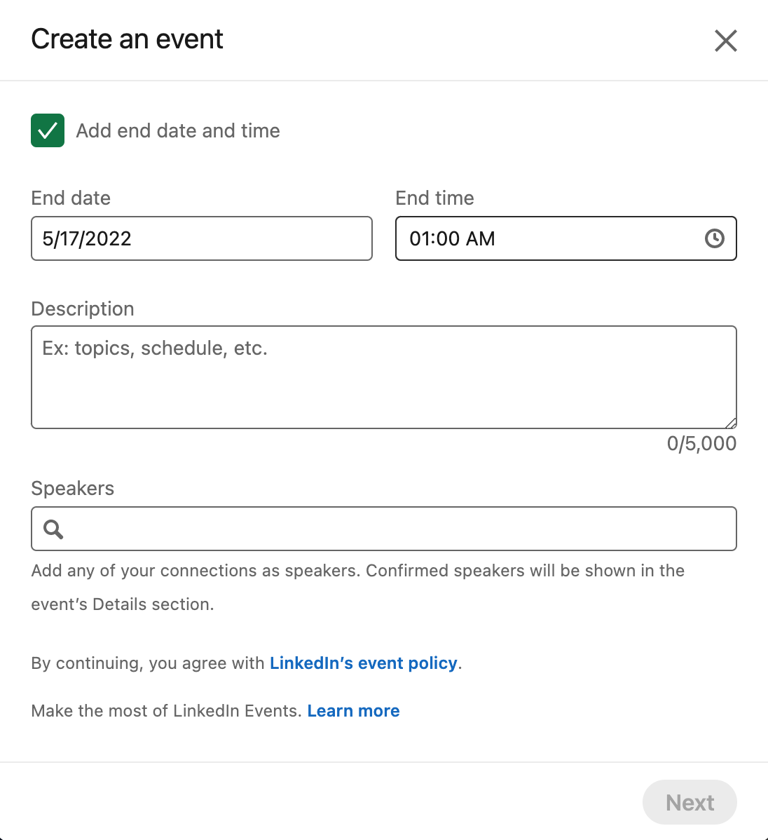 Prima di tutto ti consiglio di creare un evento su LinkedIn direttamente.