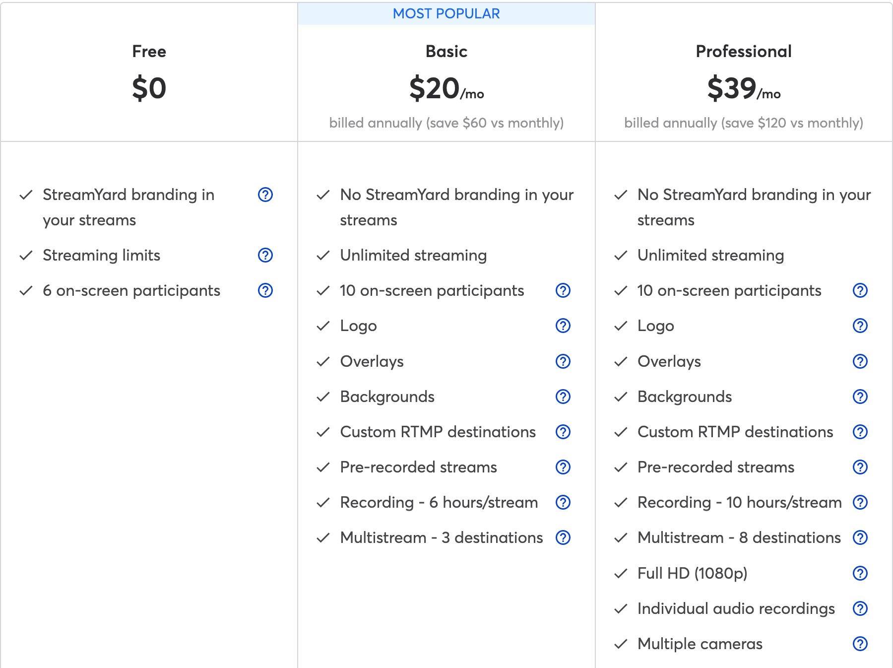 Se invece si vuole trasmettere non solo su LinkedIn ma anche su altre piattaforme, in contemporanea e live è possibile acquistare uno dei piani a pagamento a seconda del numero di canali che si vogliono utilizzare si può accedere a quello molto più popolare, 20$ al mese che, pagato annualmente, permette uno sconto anche di 60$, oppure accedere al piano mensile che costa 25$.